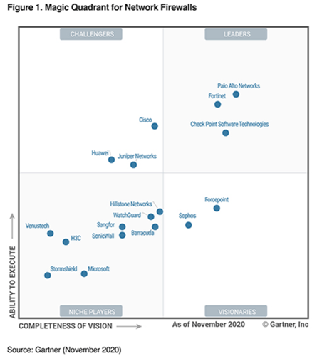 Fortinet once again finds themselves in the top ranks for the 2020 Gartner Magic Quadrant for Network Firewalls, for the 11th time. Their hardware and software speaks for itself, and that’s why we stand behind Fortinet’s products over other industry leaders.